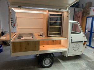 In unserer Garage ist aus der grün-, rostigen Ape das Highlight für Deine Veranstaltung entstanden.