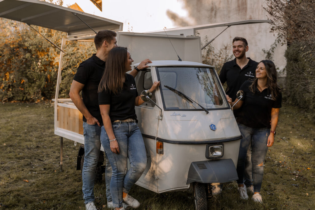 Ihr könnt Euch also sicher sein, wir sind in allen Bereichen Euer zuverlässiger Ansprechpartner und machen alles möglich was in unserer Macht steht! Gerne ein paar Eindrücke von uns als Team aus unserem ersten Shooting nach Fertigbau der MyAperitivo Event-Ape.